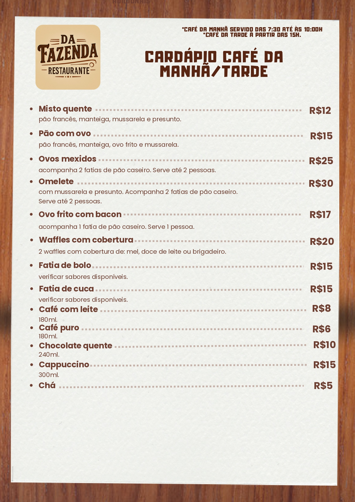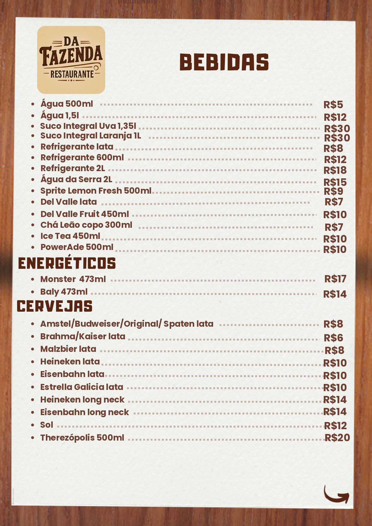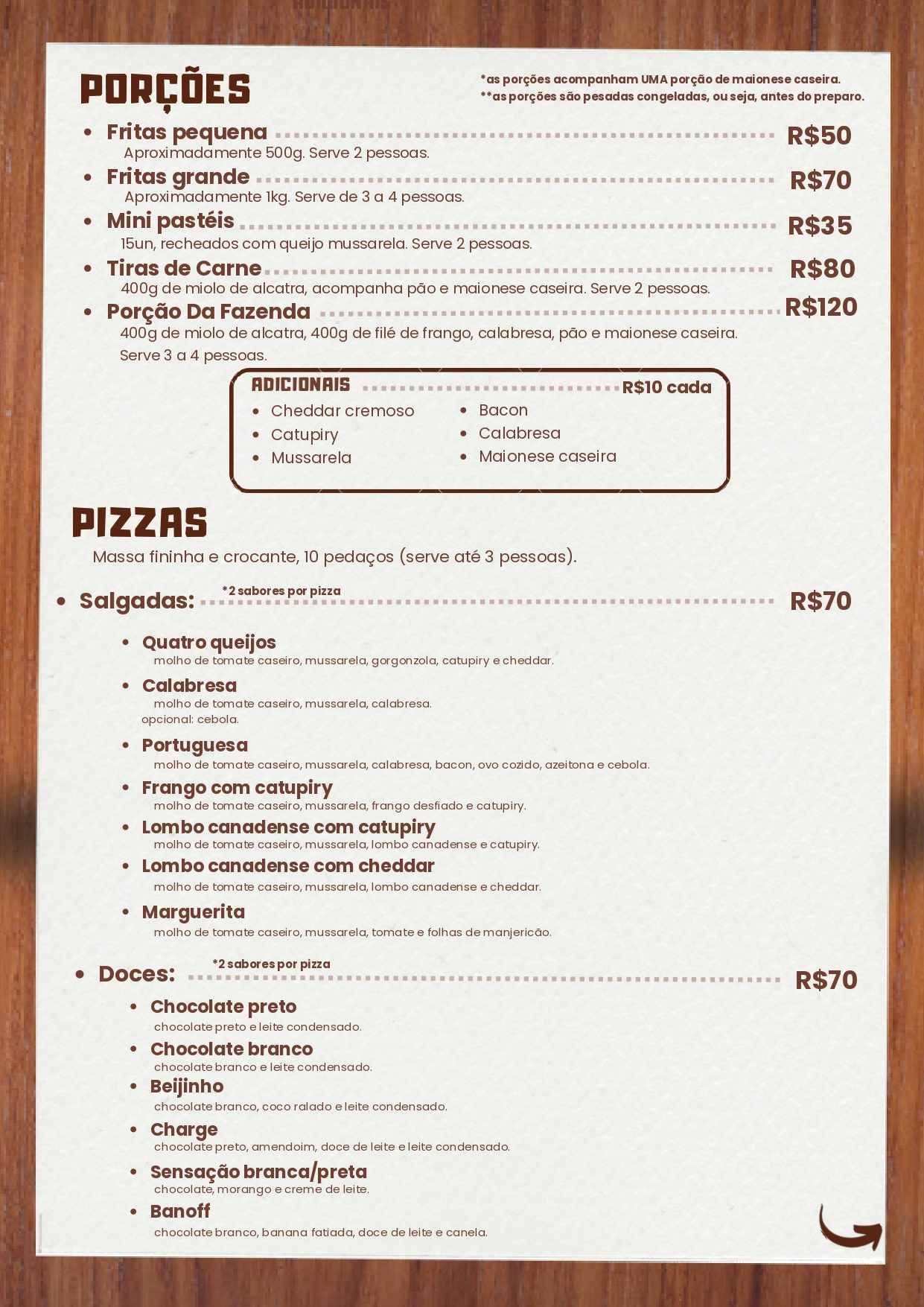 Cardápio Restaurante & Mercearia & Panificação