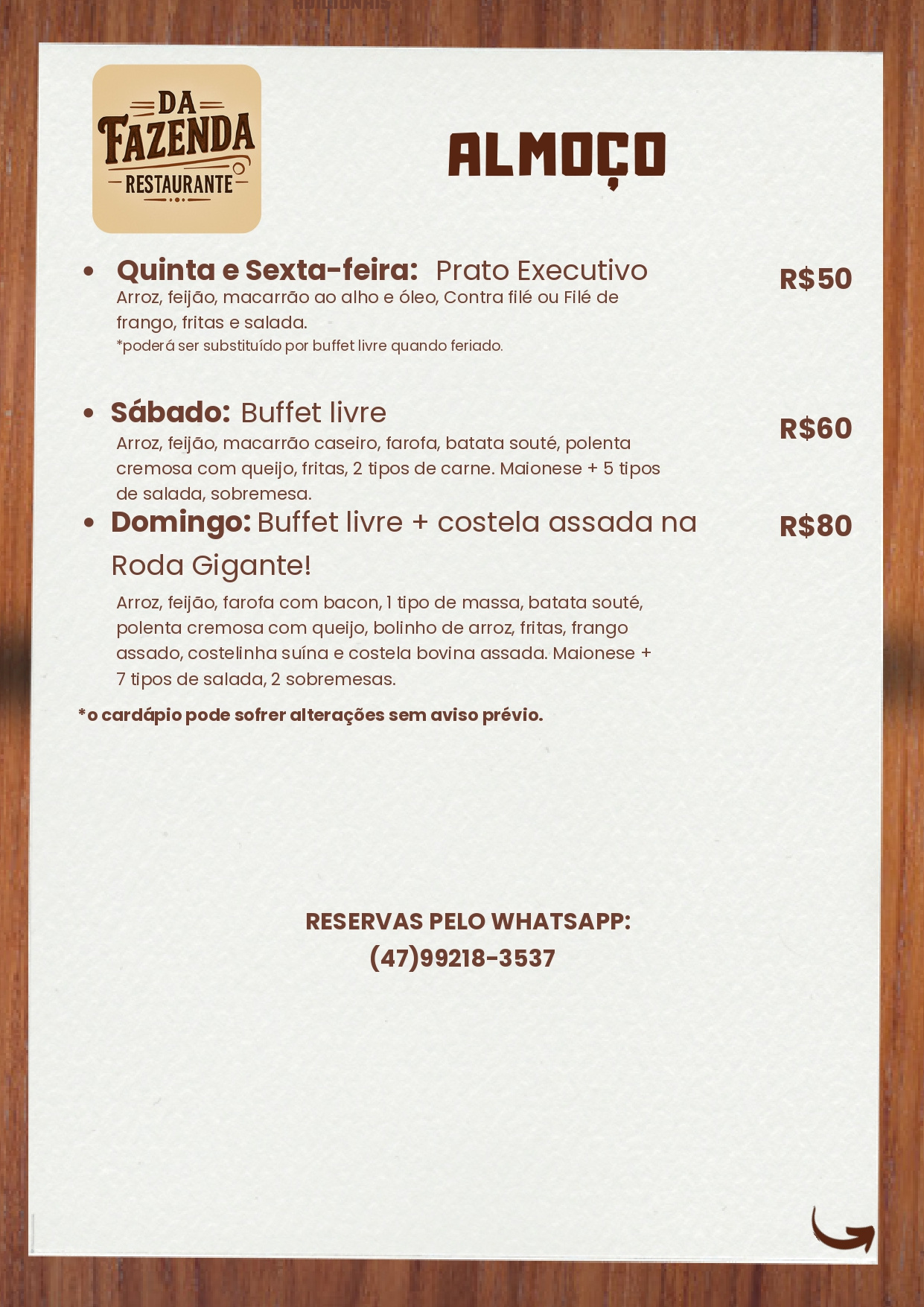 *DURANTE FERIADOS E DATAS COMEMORATIVAS, VALORES SUJEITOS A ALTERAÇÕES SEM AVISO PRÉVIO!